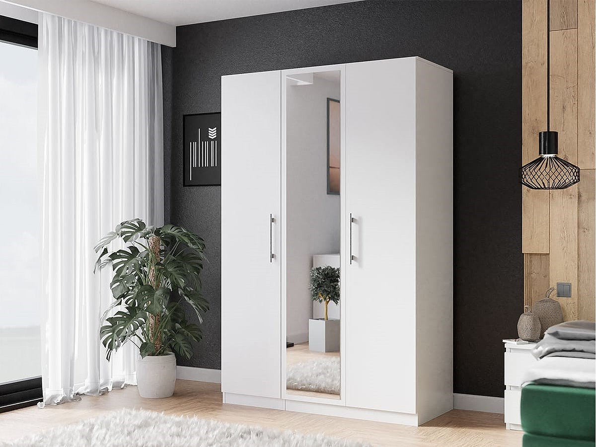 Шкаф Аврора 3, белый имеет штангу для хранения одежды на вешалках-плечиках.