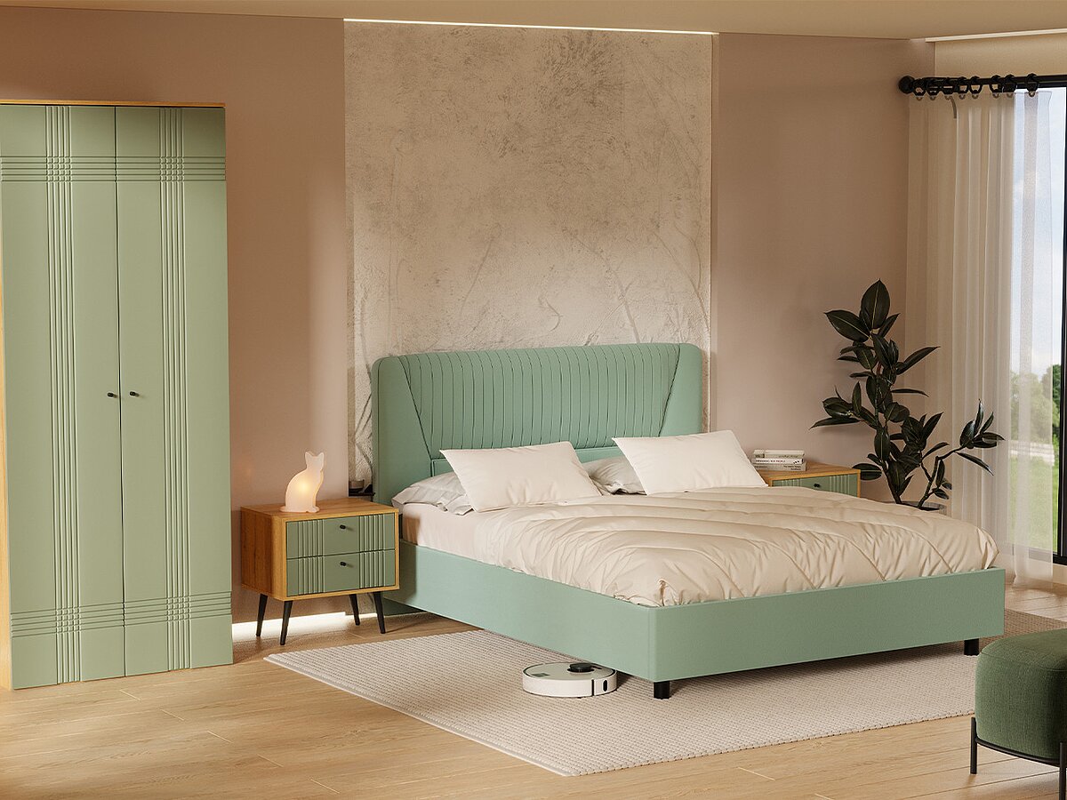Материал: корпус - ЛДСП; фасады - МДФ; обивка - микровелюр.