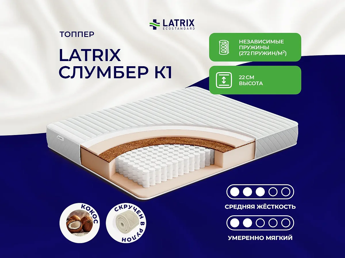 Заказывали матрас LatrixСлумбер. Матрас очень понравился. Долго выбирали,цена и качество очень достойные.