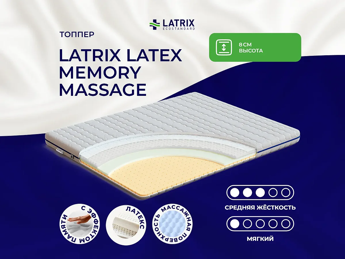 Матрас Latex Memory Massage относится к категории тонких. Это матрасы, которые могут использоваться в качестве топперов, для изменения степени комфорта вашего матраса или дивана.
