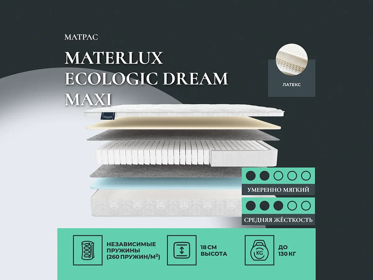 Матрас Ecologic Dream Maxi имеет среднюю толщину и подходит к большинству типов кроватей.