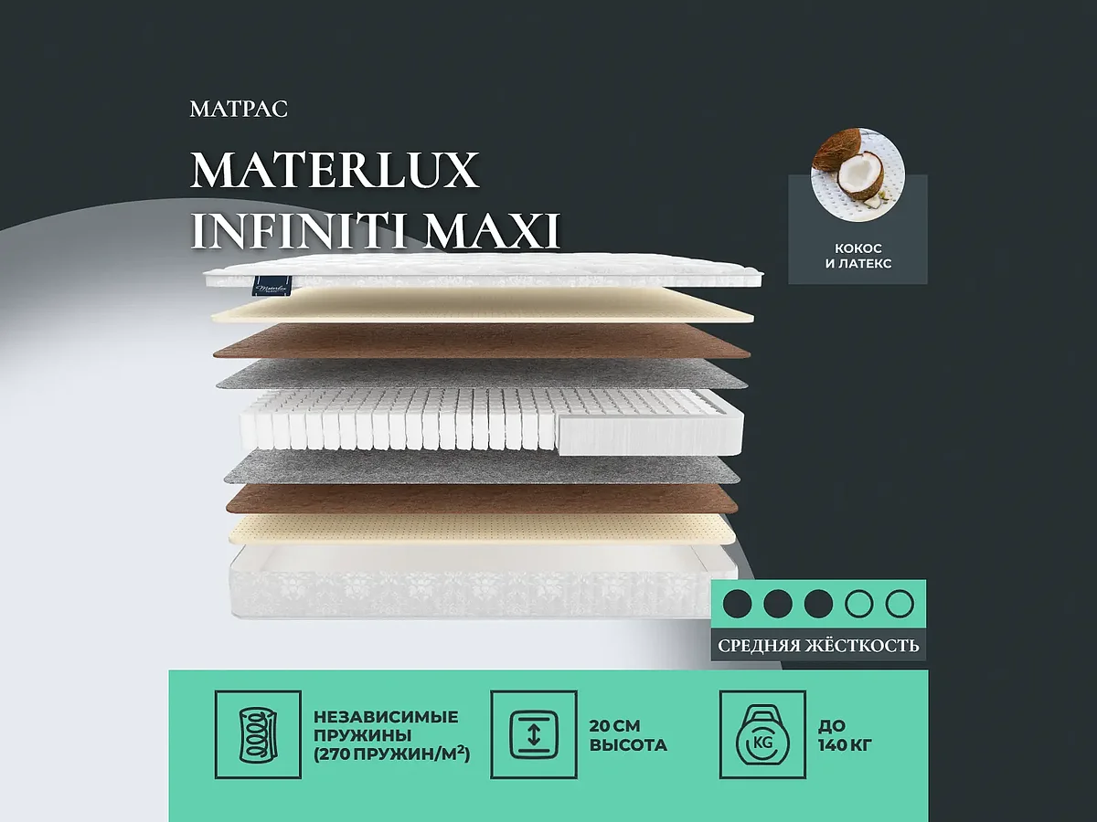 Матрас Infiniti Maxi имеет среднюю толщину и подходит к большинству типов кроватей.