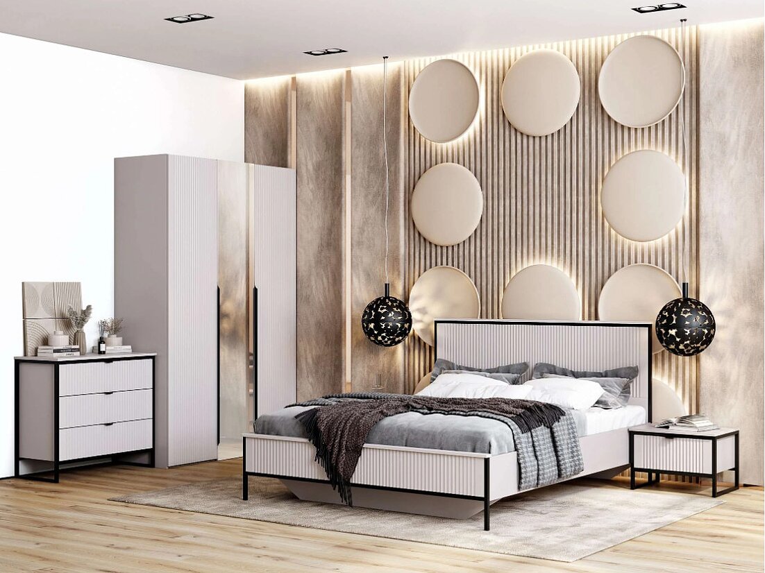 Гарнитур подходит как для просторных, так и для небольших спален, помогая эффективно использовать пространство и создавать уютное место для отдыха и сна.