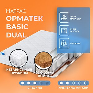 Матрас Basic Dual имеет среднюю толщину и подходит к большинству типов кроватей.