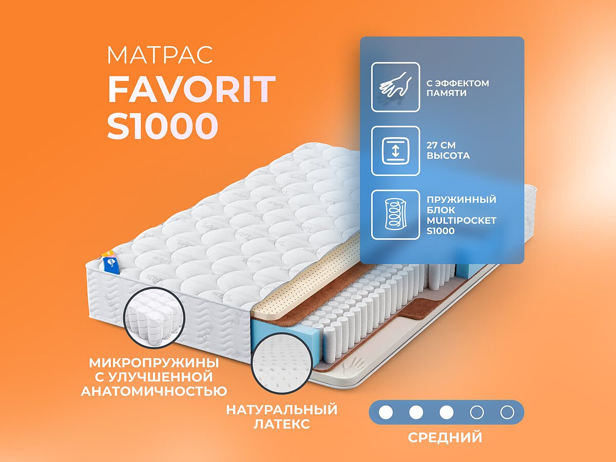 Матрас Favorit S1000 относится к моделям средней жесткости. Такая жесткость подходит большинству людей.