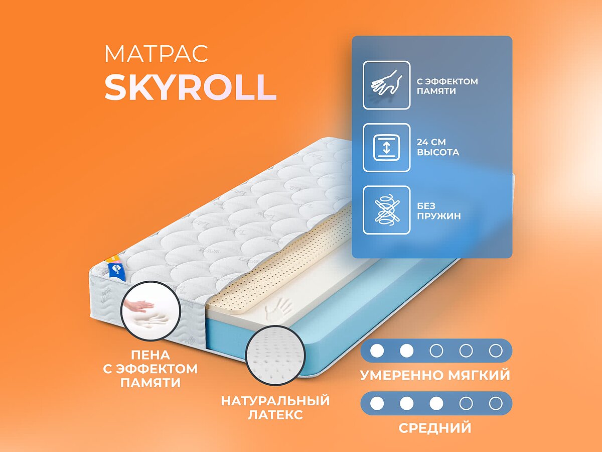 Матрас SkyRoll имеет среднюю толщину и подходит к большинству типов кроватей.