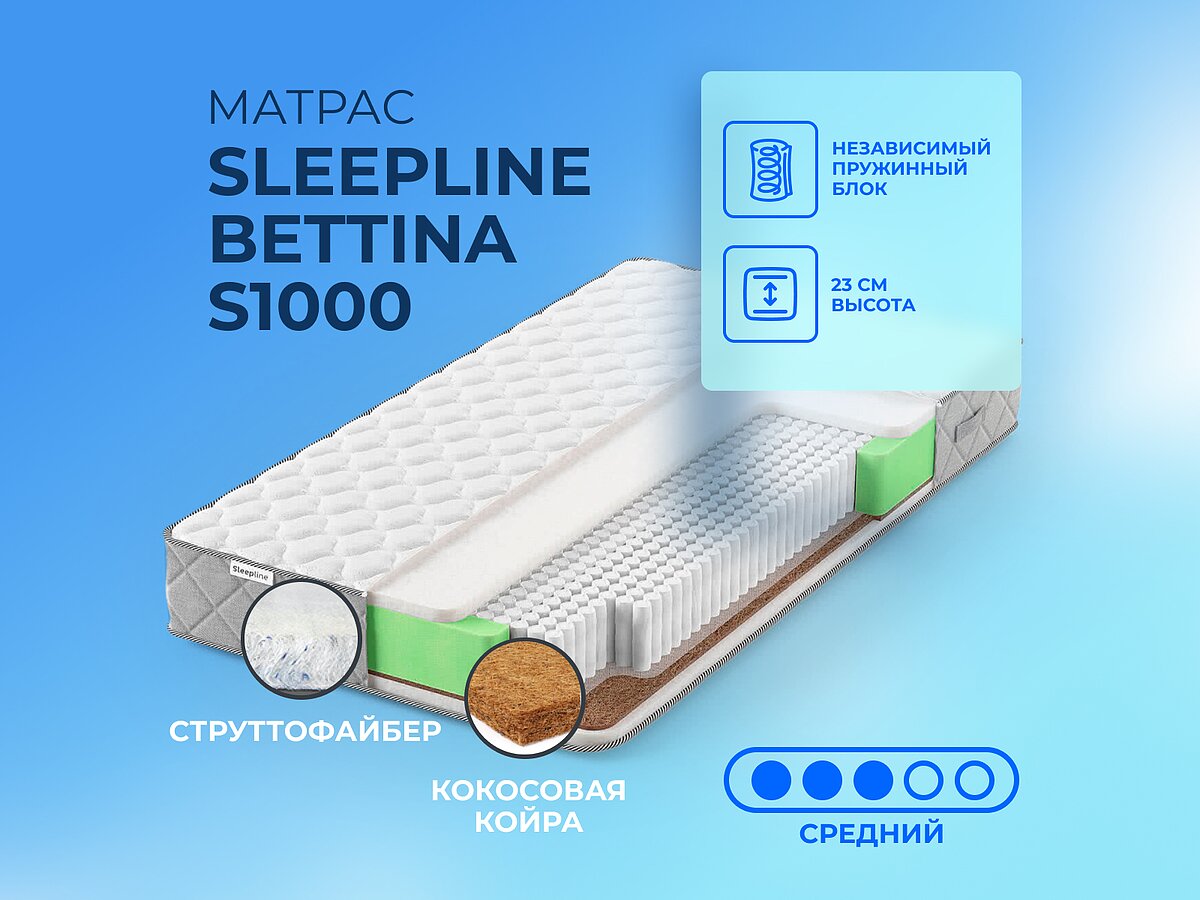Матрас Bettina S1000 относится к моделям средней жесткости. Такая жесткость подходит большинству людей.