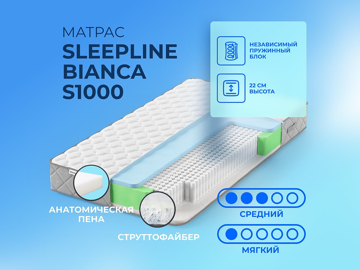 Матрас Bianca S1000 имеет среднюю толщину и подходит к большинству типов кроватей.