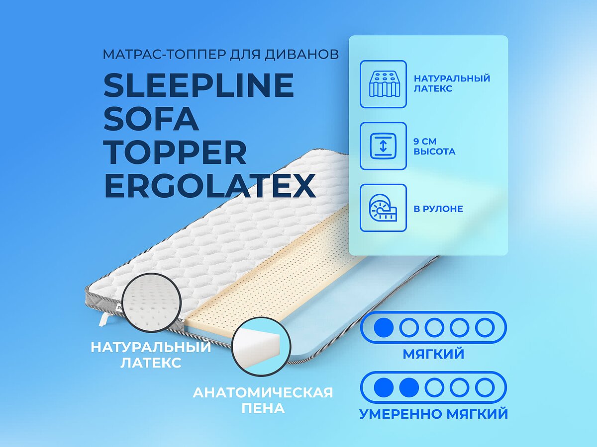 Матрас Sofa Topper ErgoLatex относится к тонким матрасам. Перед покупкой убедитесь, что он подойдет к вашей кровати.
