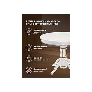 Стол Woodville Кантри 120 Молочный с золотой патиной