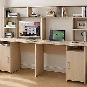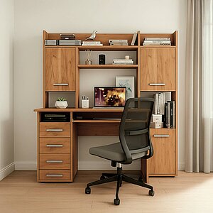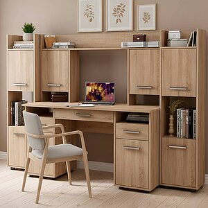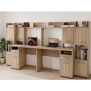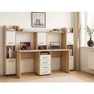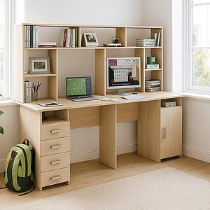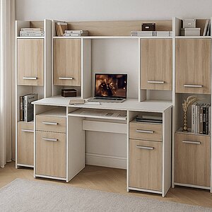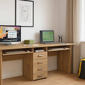 прямые большие компьютерные столы с тумбой цвета светлого дуба