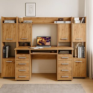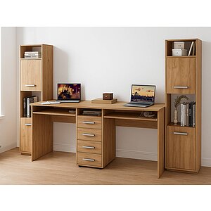 Прямые большие компьютерные столы ВМФ с тумбой цвета светлого дуба