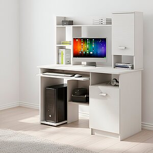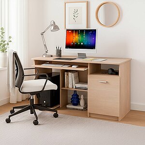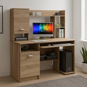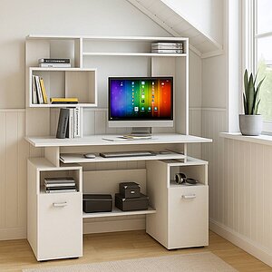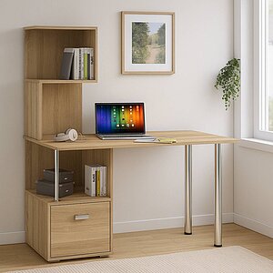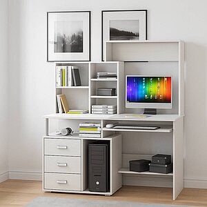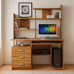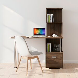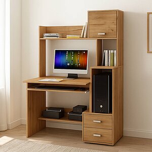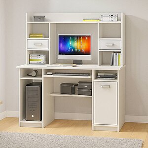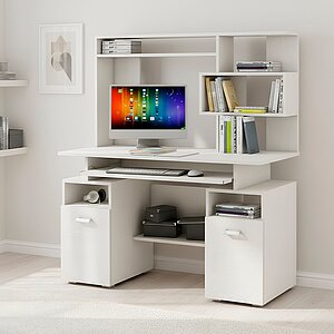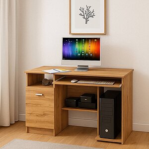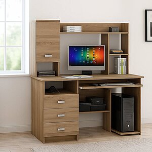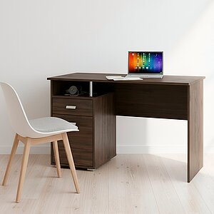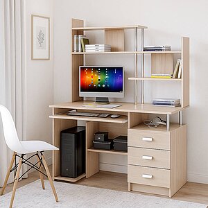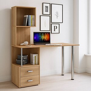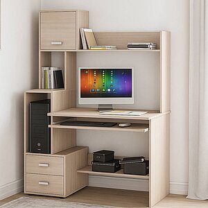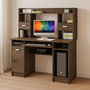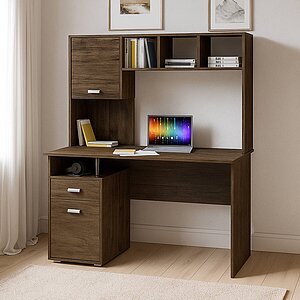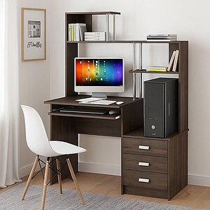 Компьютерные столы ВМФ с тумбой с полками цвета орех