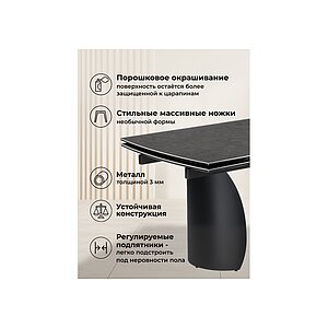 Стол Woodville Кели 140(200)х80х76 Серый мрамор/Черный