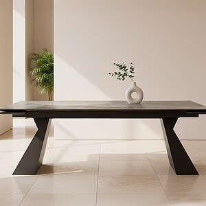 Обеденный стол лофт Woodville Форли Бетон/Черный матовый