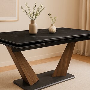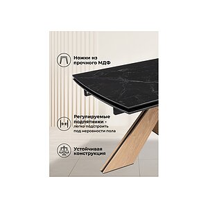 Шаннон 180(240)х90х79 черный мрамор/дуб монтана