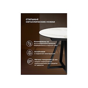 Обеденный стол лофт Stolline Бонжур Белый мрамор/Черный