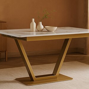 Стеклянный обеденный стол Woodville Бугун Белый/Золото