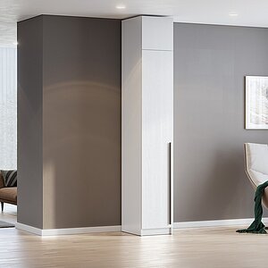 Шкаф Интерьер центр Вега угловой, Дуб крафт серый, Белый