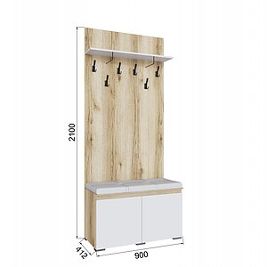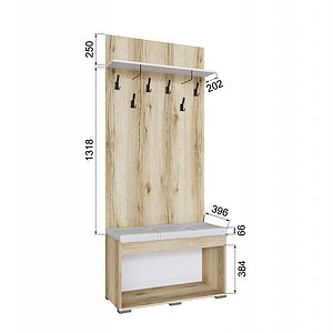 Тумба с вешалкой ТЭКС Плейона, Дуб Делано, Белый