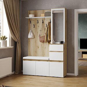 Узкая тумба для обуви ТЭКС Ямайка ЯПТ-1, Дуб крафт/Белый