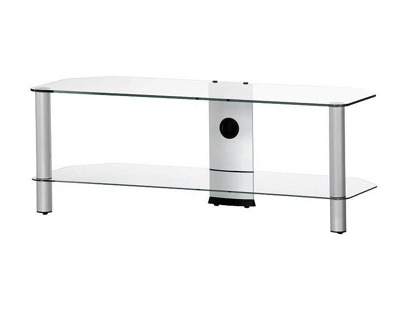 Надежная тумба под телевизор станет элегантным и незаменимым элементом любого интерьера. Изготовлена из закаленного прозрачного стекла с полированной кромкой и высококачественного алюминия. Есть кабель-канал для скрытия проводов и скрытые колесики для перемещения ТВ тумбы. Подставка предназначена для телевизоров с диагональю 37-65 дюймов.