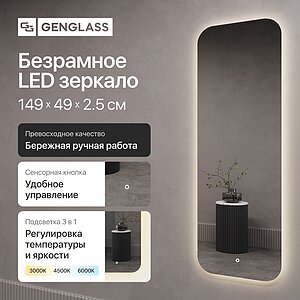 Зеркало Genglass Halfeo Nf Led XL без рамы, с подсветкой