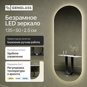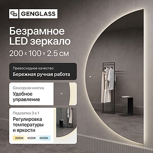 Зеркало Genglass Halfeo Nf Led XL без рамы, с подсветкой