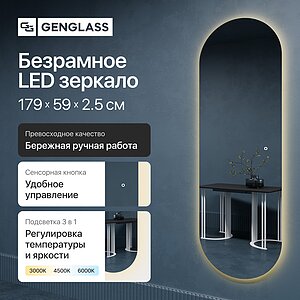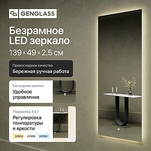 Зеркало Genglass Nolvis Nf Led L без рамы, с подсветкой